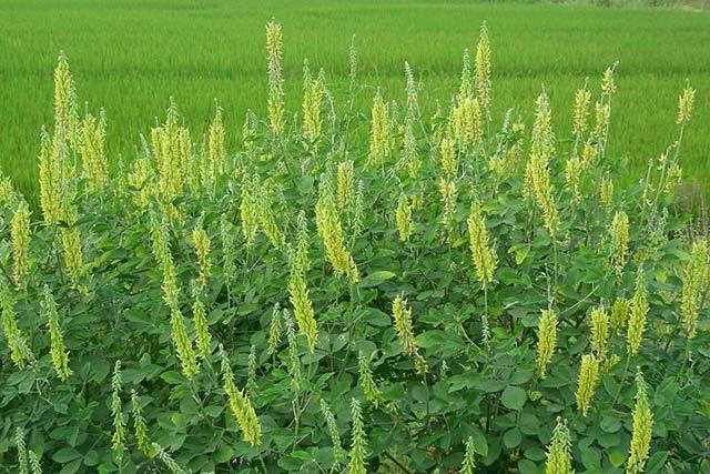 豬屎豆又名:橢圓葉豬屎豆、三圓葉豬屎豆。多年生草本,或呈灌木狀;莖枝圓柱形,具小溝紋,密被緊貼的短柔毛。托葉極細小,剛毛狀,通常早落;葉三出,柄長2-4cm;小葉長圓形或橢圓形,長3-6cm,寬1.5-3cm,先端鈍圓或微凹,基部闊楔形,上面無毛,下面略被絲光質短柔毛,兩面葉脈清晰;小葉柄長1-2mm。